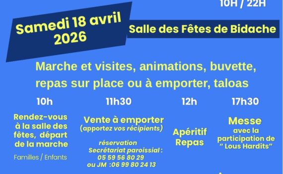 La Kermesse des 10 clochers aura lieu cette année à la Salle des Fêtes de Bidache le 18 […]