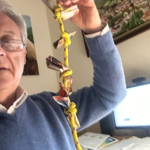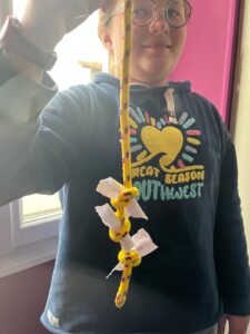 Au début du Carême, les enfants ont reçu une petite corde qui les accompagnera tout au long de ce chemin. Chaque semaine , une action leur sera proposée. Ils l’écriront sur un bout de papier et le jour où ils auront vécu cette action, ils ferons un nœud sur leur corde en nouant leur bout de papier…