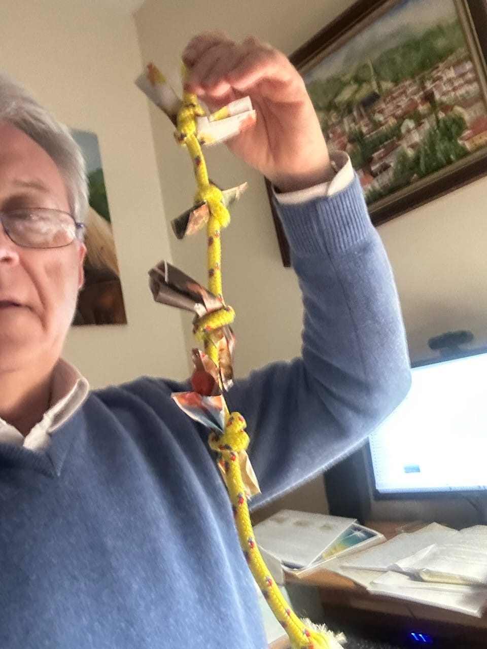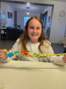 Au début du Carême, les enfants ont reçu une petite corde qui les accompagnera tout au long de ce chemin. Chaque semaine , une action leur sera proposée. Ils l’écriront sur un bout de papier et le jour où ils auront vécu cette action, ils ferons un nœud sur leur corde en nouant leur bout de papier…