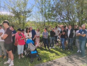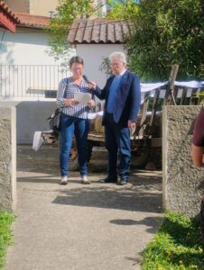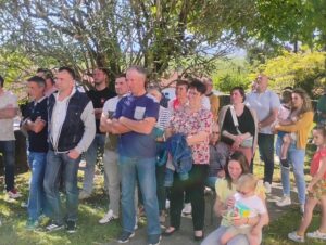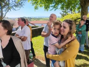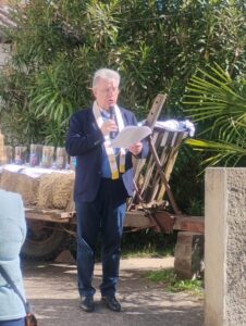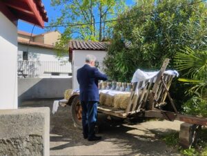 Et c’est lundi de Pâques, que nous avons vécu l’inauguration de cette action avec les paysans qui avaient été visités et leurs familles : retrouvailles des uns et des autres, découverte des portraits, mot d’accueil et de soutien de ce qu’ils font et de ce qu’ils sont, prière de bénédiction des personnes, des animaux, des locaux, des outils et machines depuis le jardin du presbytère (chacun pensant à son exploitation)