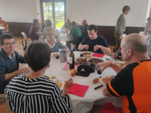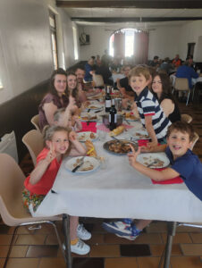 Puis nous nous sommes retrouvés pour un apéritif préparé par les membres du Conseil pastoral avant de déjeuner ensemble autour d’un bon repas préparé par Jean-Claude (cochon de lait à la plancha…).