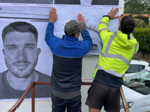 Merci aussi à Mme la Maire de Bardos qui a permis aux employés municipaux de coller ces 60 portraits (préparation des murs, collages depuis la nacelle de la commune) : oui merci à Julien, Jacques, Bastien, Florian et Patxi.