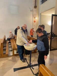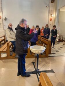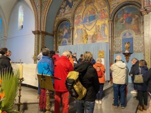 Le père Jean-Marc a pris le relais pour la démarche jubilaire :  Nous avons prié autour de la croix, du bénitier, du tabernacle, devant la statue de Marie, enfin, pour ceux qui le désiraient, trois prêtres étaient à notre service pour le sacrement de réconciliation.